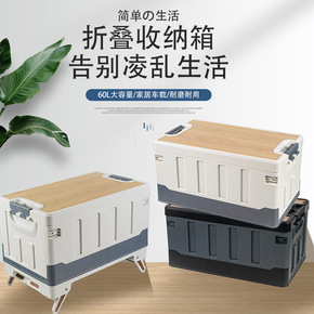 户外露营折叠收纳箱汽车后备箱收纳箱可折叠木盖储物箱...