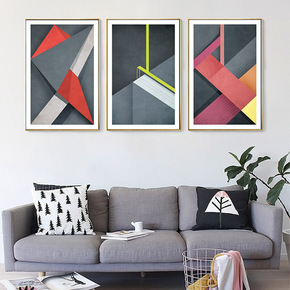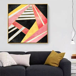后现代创意抽象装饰画客厅玄关样板房几何轻奢沙发背景...