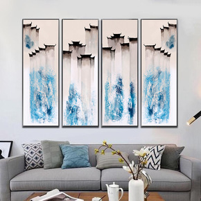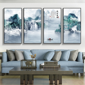 新中式客厅装饰画现代沙发背景墙办公室挂画四联茶室大...