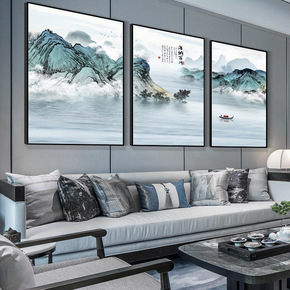 大气客厅装饰画现代轻奢沙发背景墙挂画招财山水壁画家...