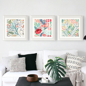花蔓草藤现代简约餐厅餐桌上的装饰画四联正方形挂画北...