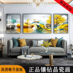 客厅装饰画晶瓷镶钻有框画现代简约沙发后背景墙壁画北...