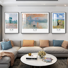 莫奈日出印象沙发后背景墙装饰画名画印象派现代简约三...