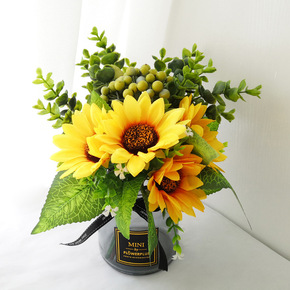 仿真向日葵花束 欧式客厅卧室办公桌装饰摆件假花绢花...