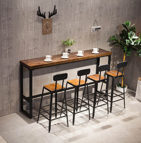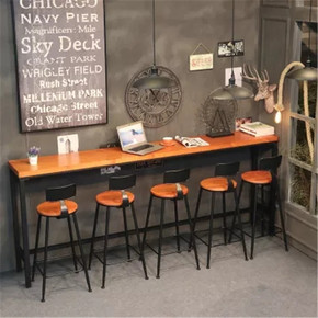 美式铁艺实木酒吧台靠墙吧台桌椅组合家用奶茶店高脚凳...