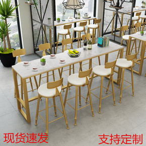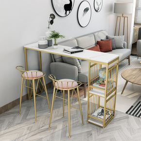 北欧岩板大理石家用吧台桌椅简约靠墙长条酒吧桌阳台奶...