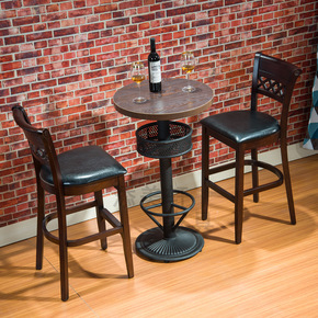 美式复古咖啡厅实木吧台桌椅 休闲餐饮酒吧高脚桌椅家...