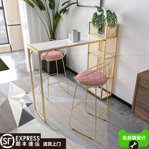 北欧客厅家用大理石靠墙吧桌简约奶茶店甜饮店高脚桌子...