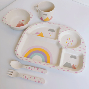竹纤维儿童餐具婴儿碗勺套装辅食碗宝宝分格碗盘北欧风...