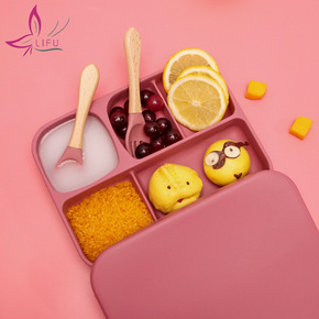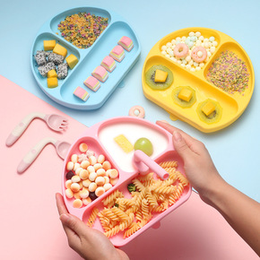 儿童分格一体式硅胶餐盘宝宝自主学习餐盘婴儿吃饭碗防...