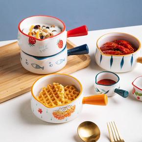 家用玻璃碗2021新款水果沙拉碗耐热烘焙带把手大号...