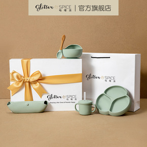 咕哩派宝宝辅食餐具礼盒套装硅胶分格餐盘辅食碗新生婴...