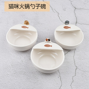日本出口hapins 可爱猫咪火锅勺子 立体猫咪碗...