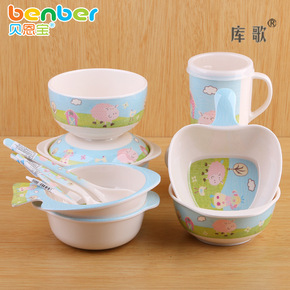 儿童碗防烫耐摔卡通竹纤维餐具碗套装宝宝吃饭吸盘碗婴...