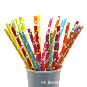 厂家批发彩色波点纸吸管可降解纸质吸管一次性创意纸吸...