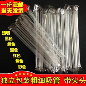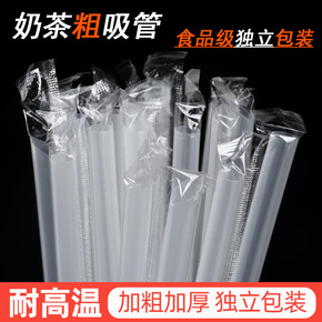 直销加粗一次性加厚白纸膜包饮料奶茶果汁粗细直尖口吸...