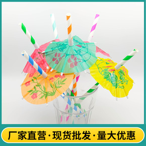一次性小花伞条纹纸吸管饮料奶茶果汁雨伞吸管舞会派对...