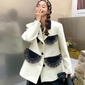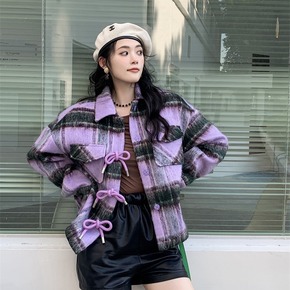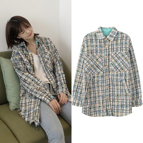 2019韩版甜美衬衫外套女宽松甜美短外套薄款粗花呢...