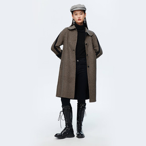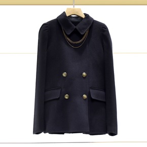 2021冬季新款气质通勤链条纽扣A字绵羊毛呢外套女...