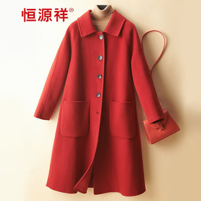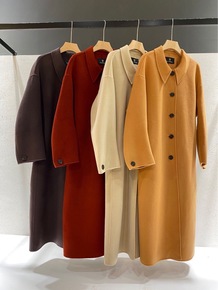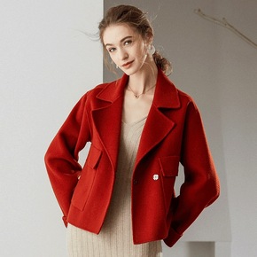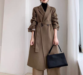 无边服装20新韩版女式双面手缝羊绒大衣弯弯袖收腰中...