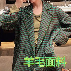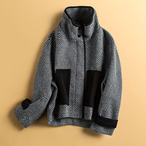 小众设计感pu毛呢拼接棒球服外套女复古格纹2021...