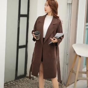双面羊绒大衣女中长款2021年新款宽松系带可可色双...