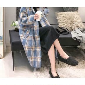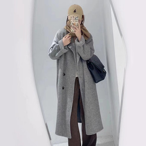 韩国东大门双面羊绒大衣女秋冬新款过膝长款宽松灰色羊...