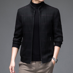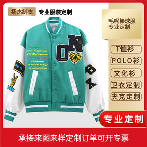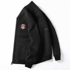 男式夹克2021秋冬羊毛呢棒球服刺绣手工双面呢中青...