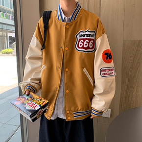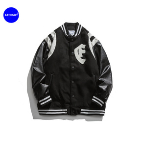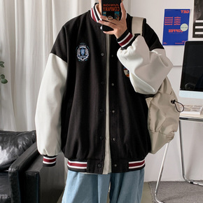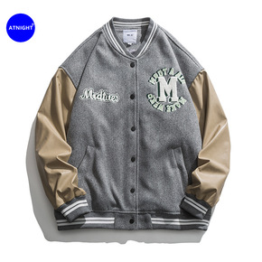 ATN男装|21秋季青少年潮牌毛呢PU拼接棒球服男...