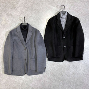 男装冬季双面尼西服黑灰色男士商务羊毛呢外套休闲西装...