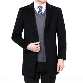 秋冬新款男式呢大衣外套免烫商务加棉羊毛呢大衣男免烫...