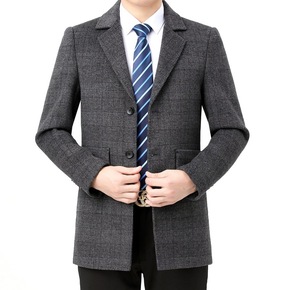 中老年人爸爸春季外套男士毛呢大衣50岁春装加厚呢子...