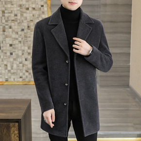 2020秋冬呢料男大衣中长款双排扣欧洲站粗毛呢大衣...
