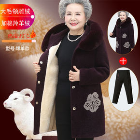中老年女装冬装仿水貂绒中长款外套岁奶奶装冬季大衣加...