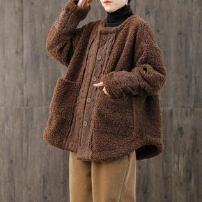 2021 欧美 羊羔毛休闲女式加厚毛绒女大衣...