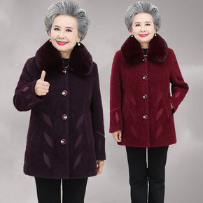 妈妈冬装奶奶外套大衣中老年人女秋加绒大码肥到人太太...