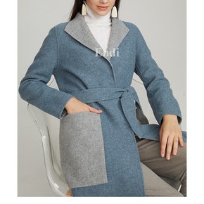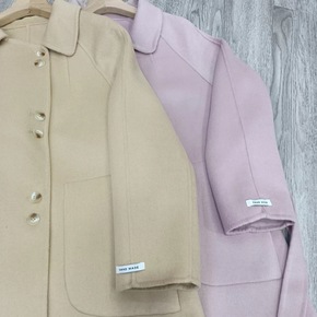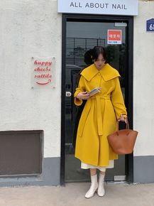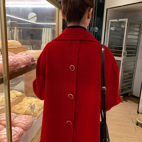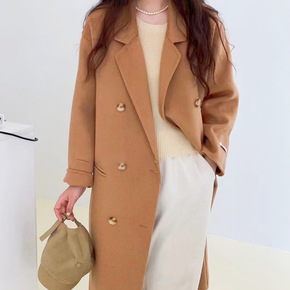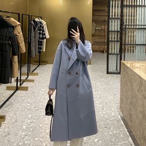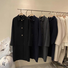 东大门W货 5个颜色 戗驳领手缝双面呢羊毛女式大衣...