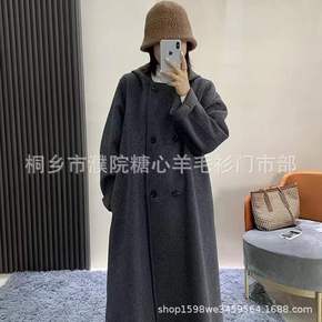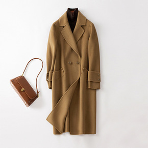 批发双面羊绒大衣女长款高端驼色宽松大码过膝100%...