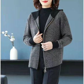 妈妈秋装外套中年女装洋气连帽夹克新款中老年人春秋大...
