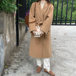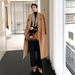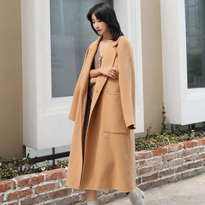 韩版双面羊绒女大衣时尚过膝中长款羊毛呢廓形毛呢外套...