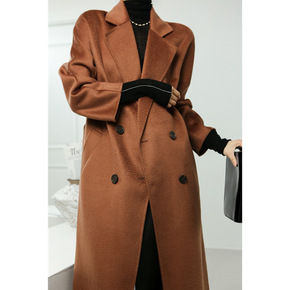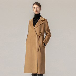长兆 M家新款30%山羊绒侧系带双面羊绒大衣女中...