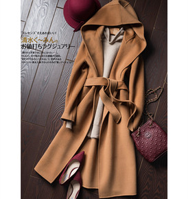 秋冬装新款双面羊毛呢子大衣女连帽长款呢外套加厚过膝...