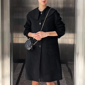 2022秋冬季新款韩式海军领长款赫本风小个子双面毛...