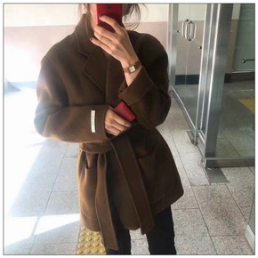 双面羊绒大衣女短款2022年新款韩版修身系带灰色双...