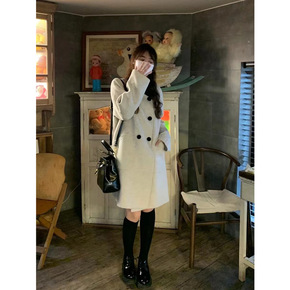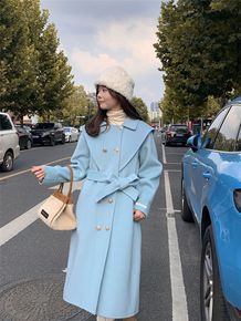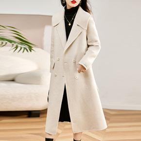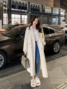 【雪山白茶】2022秋冬新款高端双面羊毛大衣女中长...