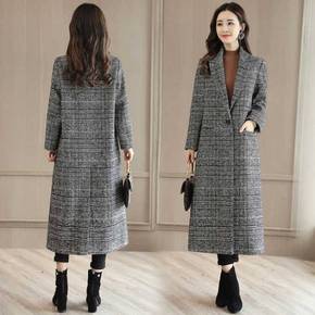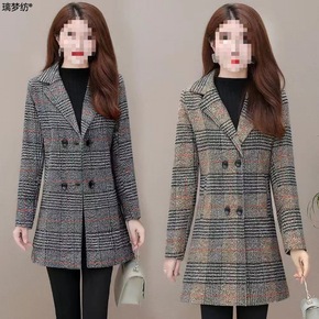 2022冬季格子新款复古格子毛呢外套女气质呢子西装...