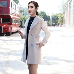 2022新款冬季加厚加棉仿羊绒修身女装中长款毛呢外...