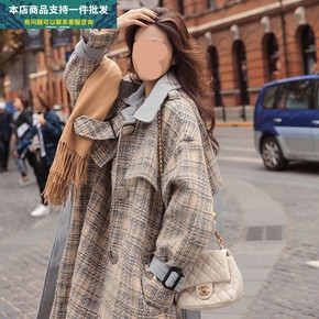 2022秋季中长款风衣毛呢风衣女修身显瘦过膝大衣外...