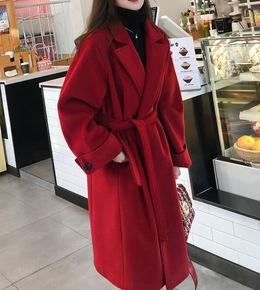 2022秋冬新款大码红色毛呢外套女胖mm200斤宽...