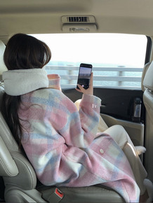 白*女 格纹毛呢外套女冬2022年新款高级感小香风...